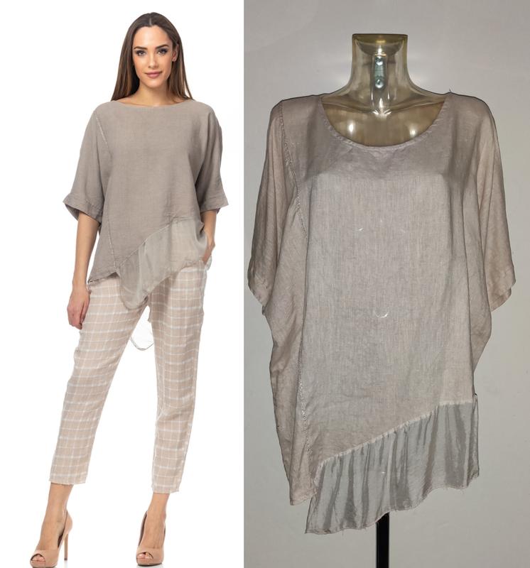 Ошатна лляна блуза/бохо оверсайз, зі вставкою шовку Італія. Фасон — оверсайз. Колір — гарний бежевий. Легка! Стан — нові речі! 📍Заміри: Довжина — 77 см, із шовковою вставкою — 88 см. Ширина ворота — 27 см Дл.рукави від коміра — 39.5 см Ширина рукава — 22 см ПОГ — будь-який, + - 80 см ПОТ - 69 см Низ — до 72 см. Ціна 350 грн, без торгу.