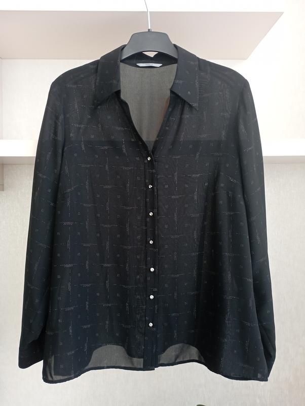 Объем груди 116. На размер 48-50. Слегка прозрачная, застежка на очень красивых пуговицах. Пошив полностью соответствует стандартам качества M&S. Нова.