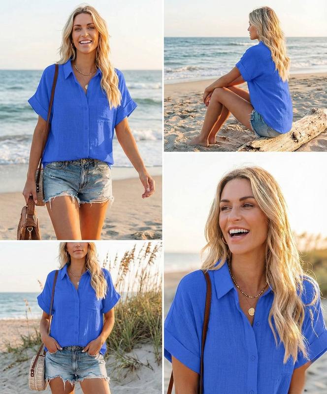 Блузка №621 Ціна-470грн Синий 42-44,46-48,54-56 тканина льон Цвет - голубой, электрик Модная свободная рубашка на пуговицах с карманом на груди