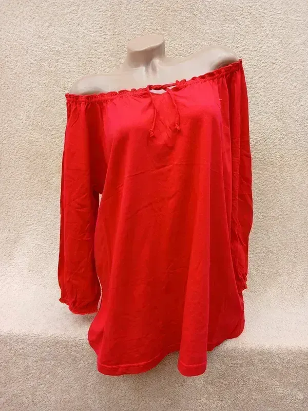 Интересная тонкая красная блуза, можно носить как обычно или на плечиках, трикотаж хлопок, стали идеал ПОГУ 70-75, ПО бедра 70-75, длина 73 Замеры отличий половина