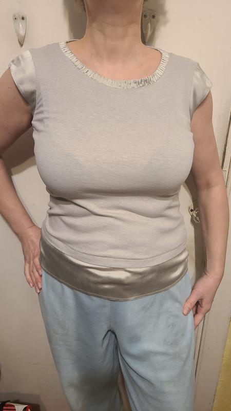 Плечи 40,полуобхват груди 45-48,по спине 59,хлопок-шелк-эластан.