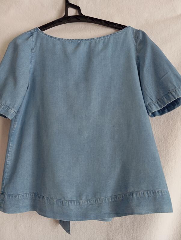 джинсовая, легкая блуза с короткими рукавами,с завязкой на спине,плечи 34.грудь 46.длина 55.натуральная лиосел.р.S.