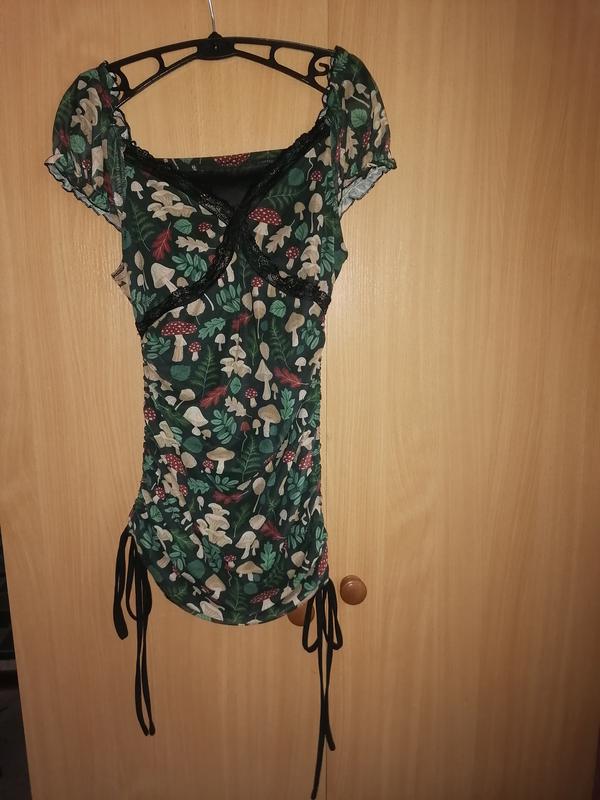 Блуза топ Romwe. Розмiр S, US 4, EUR 36. ПОП 36 см, ПОГ 48 см, ПОТ 38 см, ПОН 40 см, рукав 17 см, довжина 76 см. Матерiал 97 % полiестер, 3%еластан. Сбоку завязки регулируется длину.
