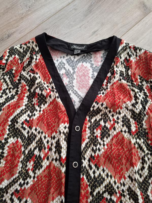100% вискоза, легкая, приятная к телу. очень нарядно смотрится. состояние новой вещи, одевалась несколько раз.