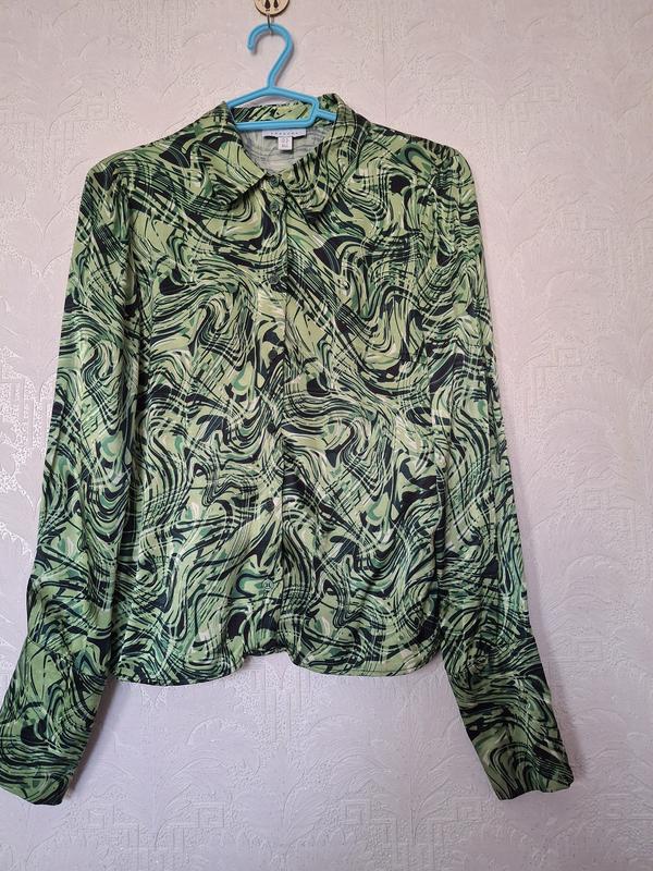 блуза Topshop в трендовый принт,коллекция для ASOS с оттенками сочного лайма и хвои. пог- 50 см длина- 60 см ткань имеет легкий благородный отблеск/ напоминает шелк/, но это вискоза. изготовлена в Марокко, что свидетельствует о высоком качестве.