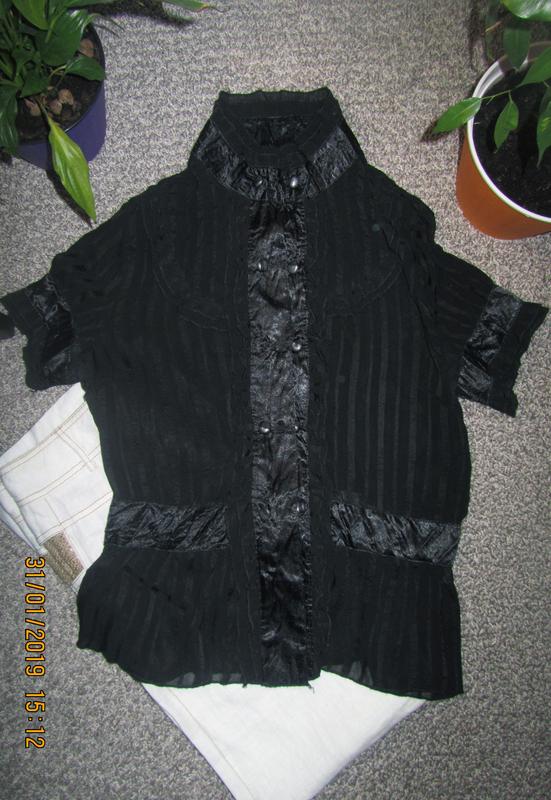 Шифоновая блузка. Хорошо смотрится с брюками. Есть один нюанс утеряна одна пуговичка (на фото видно).