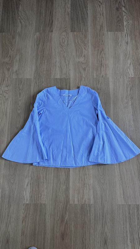 Оригінальна,фірмова блуза Zara з широкими рукавами в біло-синю смужку.Дуже легка та приємна до тіла,стан ідеальний.Колір як на останніх фото.