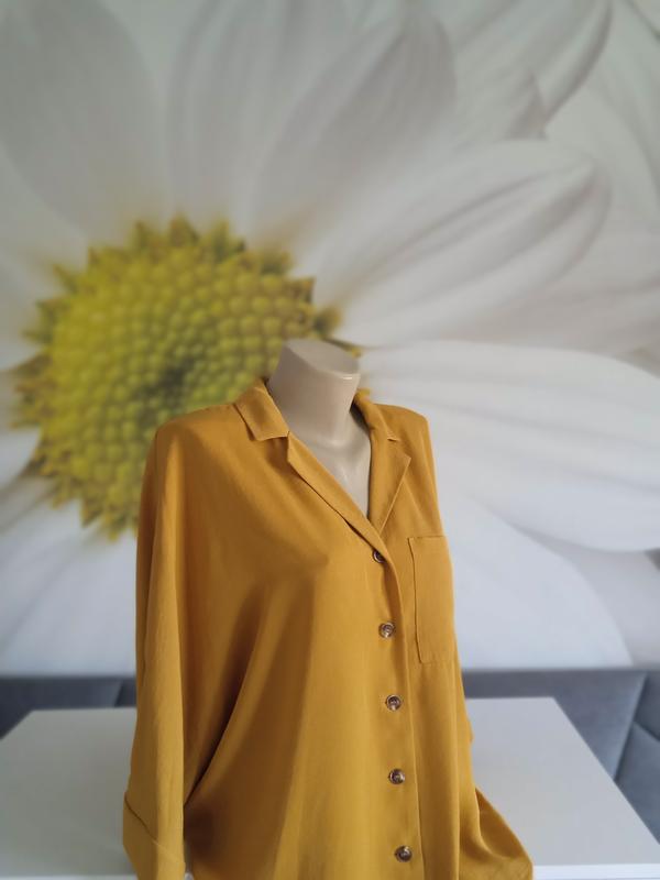 Классическая однотонная блузочка с коротким рукавом насыщено желтого цвета. Легкая и комфортная. Приятная на ощупь. Плотная плотная ткань. Практически не тянется. Ложится свободно. Фасон-легкая летающая мышь. На гудзичках. Аккуратный вырез Есть размеры. 56р на пог-60-62 54р на пог-58-60