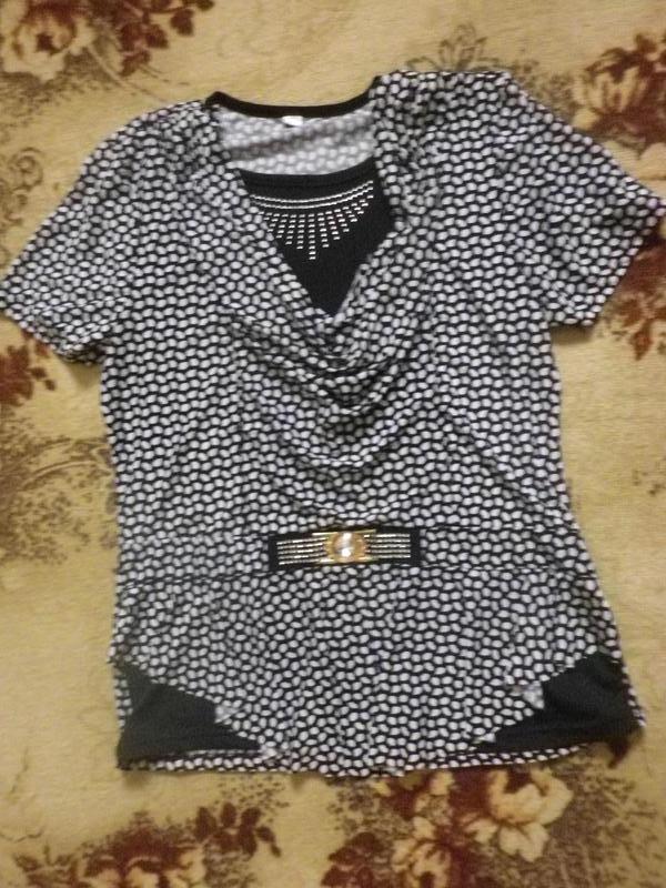 Очень красивая, нарядная кофточка к лету,под юбку,брюки.Состояние новой,отлично садится по фигуре,скрывает животик (если он есть).Оч.,хорошо тянется.Р-р примерно 48-50 тянется до 52.Замеры плечи-37см до47см,пог 47см до57см,длина-60см,пот-44см до 54см.