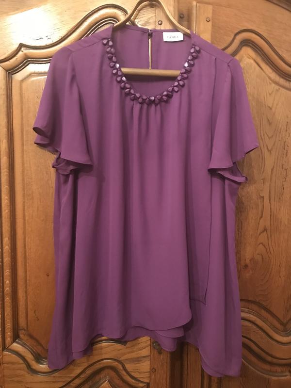 Очень красивая блузка,состояние идеальное, без дефектов.Бирки все есть,хорошо смотриться и к юбке и к брюкам.Красивое украшение на горловине,все камни на месте.Скрывает все дефекты фигуры,можно использовать и тем кто ждёт ребёнка.илет на 48-50 размер Длинна 64 Пог иПот до 57(свободно)