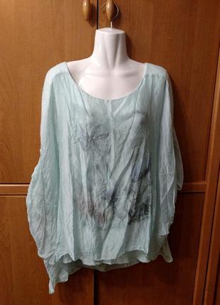 Нежная блуза шелк,красивый нежный бюрюзовый цвет,внутри майка тонкая вискоза,верх нежный шелк,рукавчик прямой,без проймы,подстегивается на пуговку