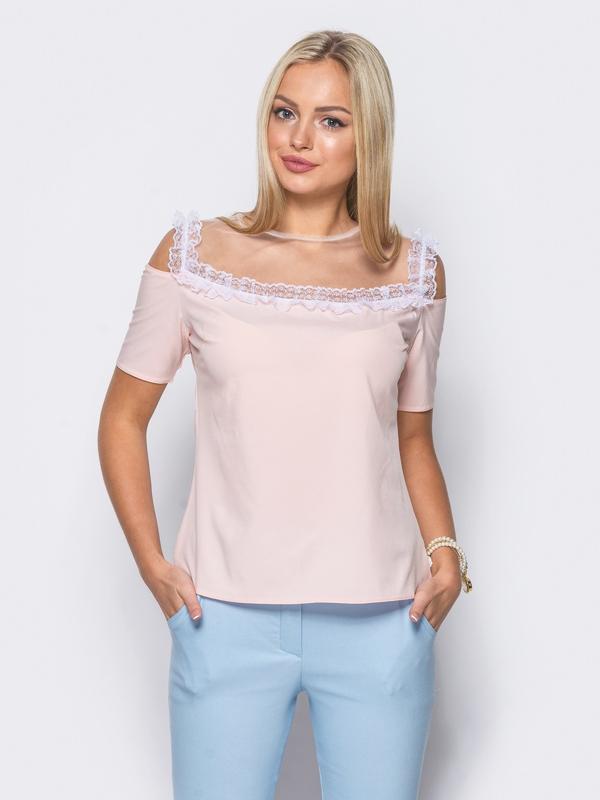 Женственная блузка приталенного кроя. Модель с круглой горловиной. Изюминка модели – кокетка, выполненная из фатина. Без застежек. Размер: 42, 44, 46, 48,50 Цена распродажи 290грн Замеры изделия в 44 размере: длина по спинке – 60 см; длина рукава – 17 см. Материал: Soft Состав: 50% вискоза, 50% полиэстер Фото в живую. Цвета: персик, розовый Растяжимость: средняя