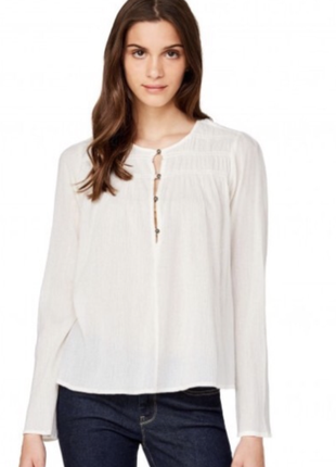 Красива і стильна блузка відомого бренду Esprit.Стан нової речі,без дефектів. .Практично не просвечиваеться.Цікаво зроблені рукава,можна і довгі,можна регулювати і на короткий час. Розмір вказано 42 Довжина 64 Рукав 60 Пог56 Пот56 Поб54 Плечі 43 Внизу є резиночка🌹 Колір -білий з вкрапленням орнаменту,дуже красивий принт🌺