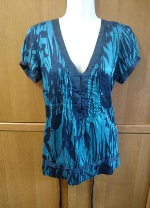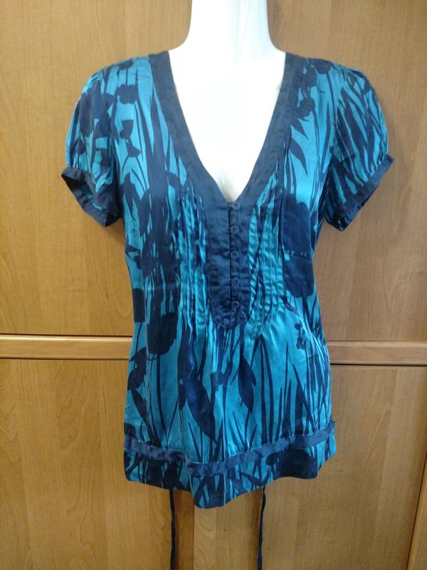 Блуза шелк,легкая,приятная,красивый цвет насыщенной морской волны,бирюзы и синий