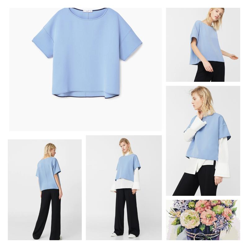 блакитна щільна блузка Mango Іспанія розмір С-М оригінал блузка що знизу в подарунок вона з браком приїхала...я її зашила ...в області талії в трьох місцях ...якщо так носити або під сарафан видно не буде цього шлюбу тканина щільна не просвічує широкий фасон можна під сорочку носити Зроблена В Португалії заміри довжина спереду 53.5 ззаду 57.5 плечі спущені 59 рукав 11 під проймою 58 відео тут https://www.instagram.com/p/BuyuMnZHeEo/?utm_source=ig_share_sheet&igshid=6ra3v632uk9s