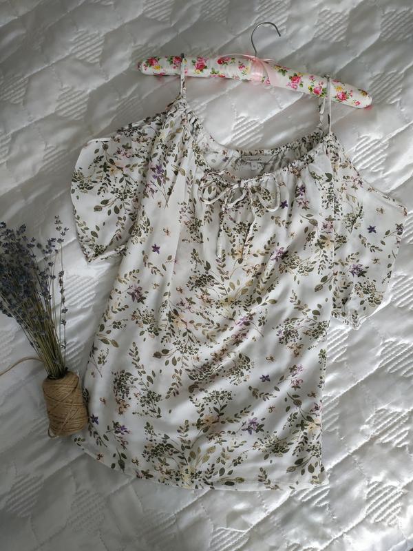 Peacocks 12 ☘️ Блуза вільного крою розмір вказаний Л-12. В ідеальному стані, на бретельках відкриті плечі, легка натуральна віскоза😉❤️ Заміри по потребі. Смотрите все мои объявления 🌱 Подписаться на обновления ❤️