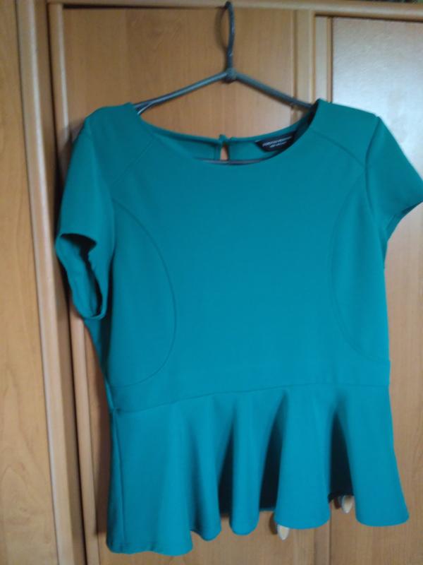 Дуже красива блуза з басочкой. На жаль, фото не передає натуральний колір речі. Блуза насиченого кольору морської хвилі. Можна носити під широкий пояс. Приховує відмінно недоліки фігури і вигідно підкреслює талію. Тканина якісна , не тонка. Не мнеться. Іде на розмір 48-50. Заміри вишлю.