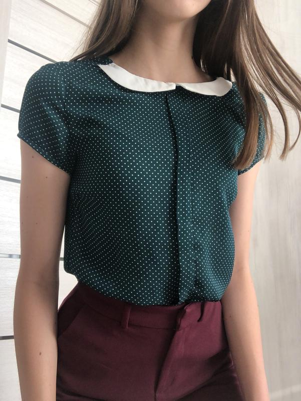 Темно-зеленая блуза в горошек befree 32/xs Длина 59,5см ПОГ 41см ПОТ 39см