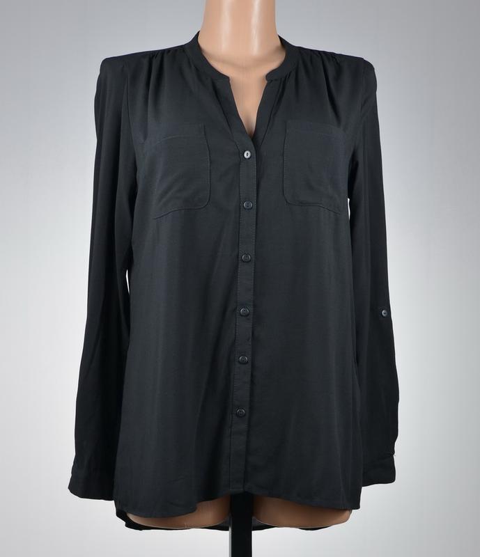 Жіноча віскозна блузка з довгим рукавом ONLY. Застібається на гудзики. На грудях дві кишеньки. Рукав можна закочувати і защіпати спеціальними глястиками. Низ заокруглений. ЗАМІРИ: ПОГ 49 см, ПОТ 48-49 см, ПО по низу 53 см, довжина рукава 60 см, довжина блузки 71 см.