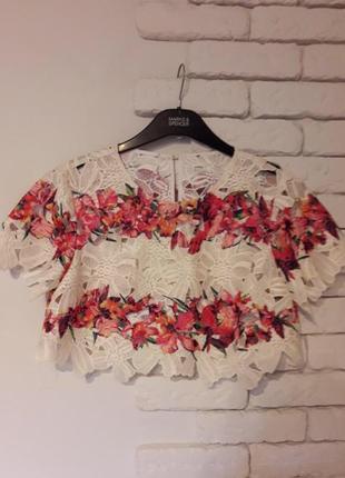 Стильна вкорочена блуза з мережива. Підкреслить будь-який образ. Довжина по спинці- 38 см.