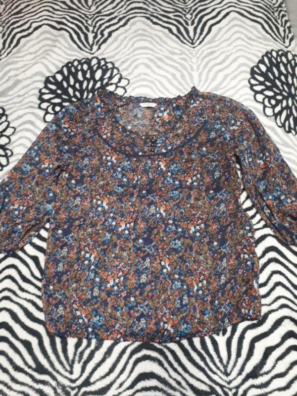 Блуза шифоновая. Подойдет на 48 размер, на ОГ 98см. В меру прозрачная, на последнем фото сфотографировала на руке. Если будут вопросы, с удовольствием отвечу.