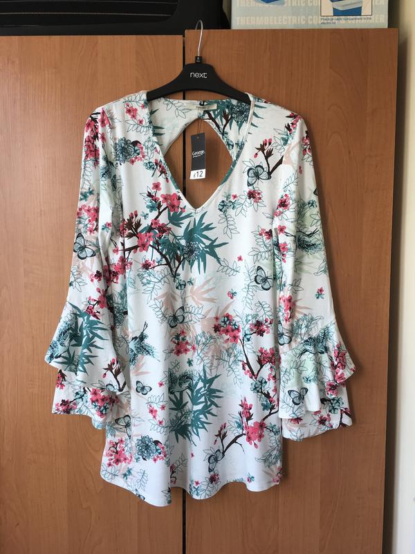 Нарядный топ с длинным рукавом райские птички цветы принт george