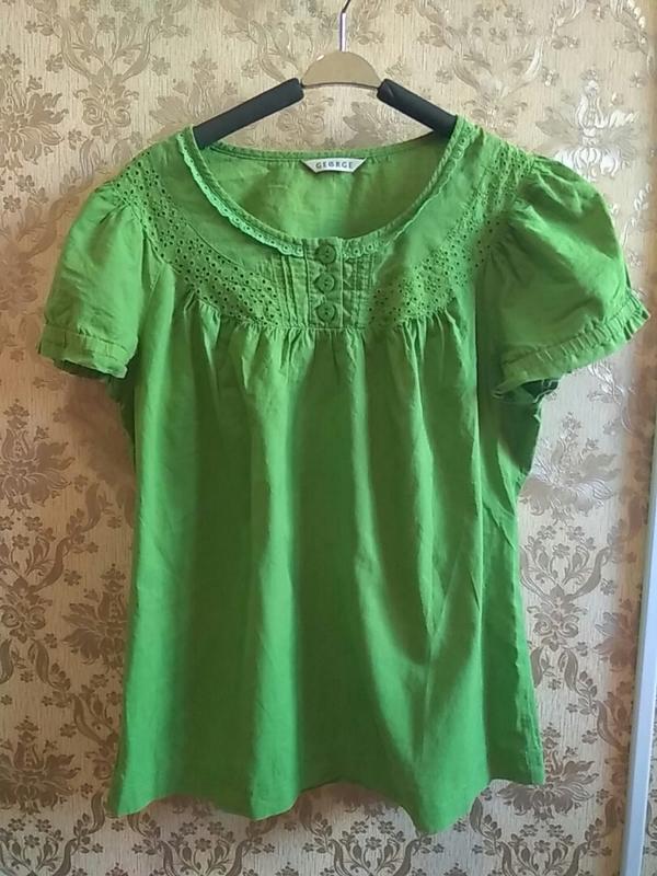 Ярко зелёного цвета блузка из хлопка. Длина 61, пог 46, ширина внизу 105.