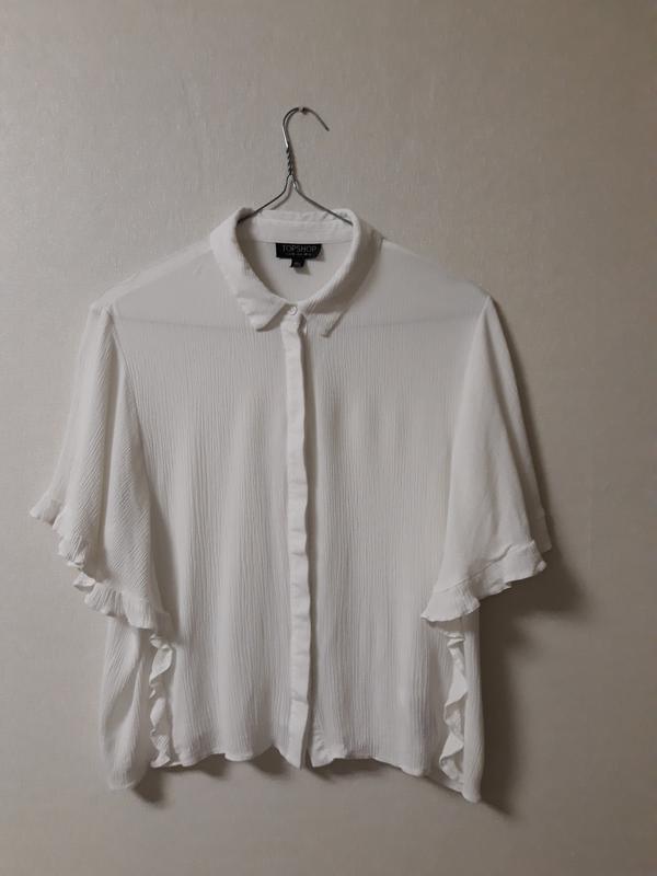 Милая белая свободная блузочка с воланами Размер 38 М Длинна 55 см ПОГ 49 см Плечи 13 см