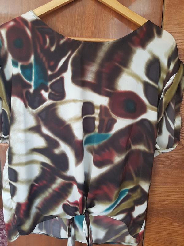 Красивая блуза, расцветка оригинального размытого цвета, впереди на завязке