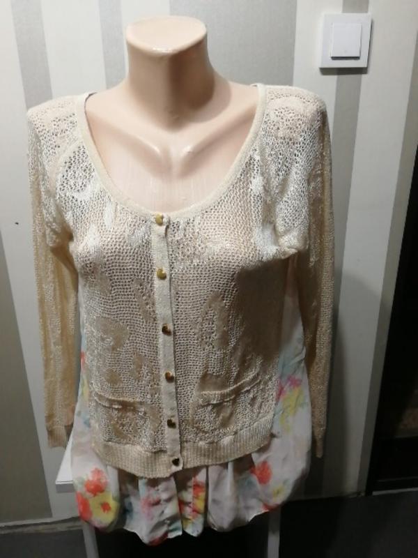 Кофта-блуза рукава и середина переда ажурное вышитая, зад прозрачная ткань. Размер 40