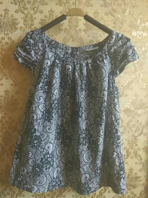 Дуже гарна кофточка з бавовни в принт під мереживо. Ззаду на гудзиках. Довжина 59,пог 52,піт 50