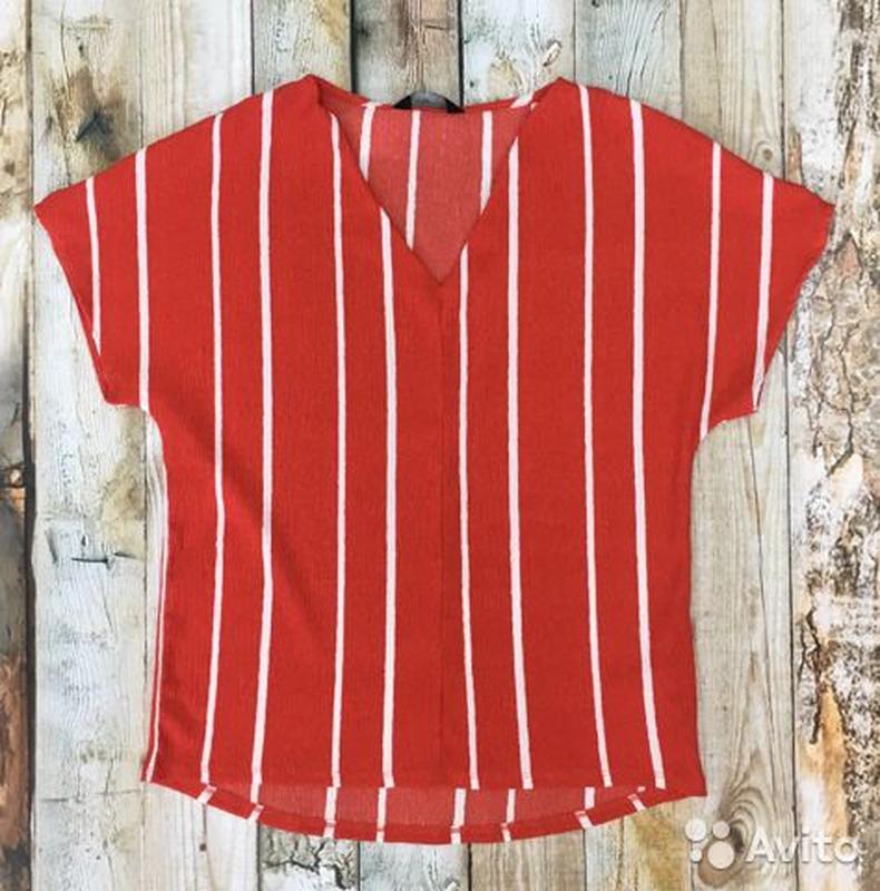 Красивая новая блуза трендового цвета чили в белую полоску. Длина по спинке 70 см,ширина 53см . Подойдет и на размер М (см.фото)
