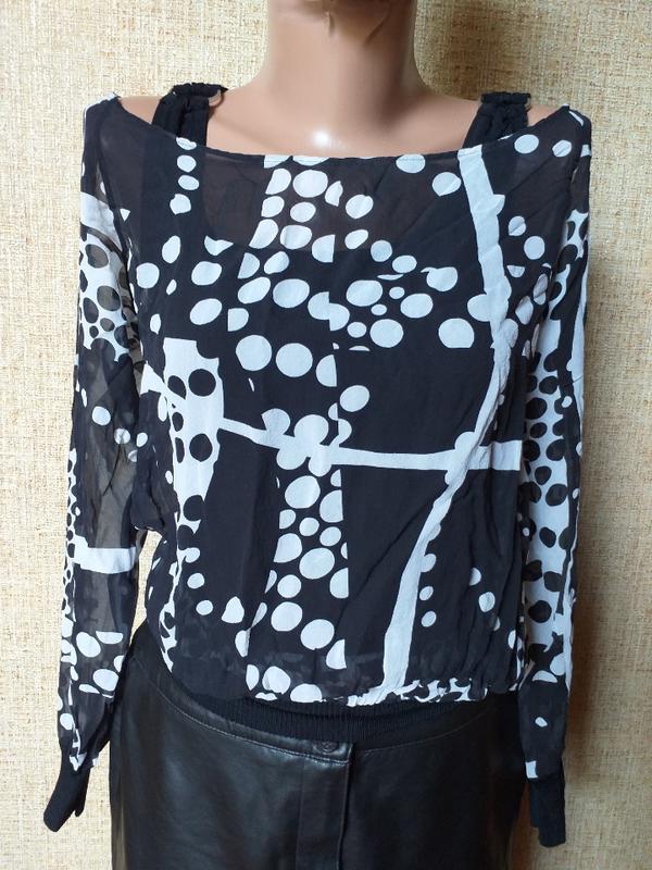 Классная блуза из натурального шелка, вырез лодочной красиво открывает плечи, снизу плотная майка. Идет в подарок при покупке любой вещи.