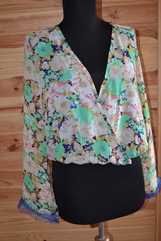 Воздушная нежная блуза в стиле кимоно. Украшена кружевом на рукавах. Сзади на завязке. Нежный цвет! Новая вещь. Размер 44-46. ПОГ - ДО 50 СМ. ПОТ - до 40 см.