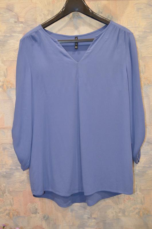 Легкая блуза Stradivarius. Бледно-голубой цвет. Свободный крой. Перед чуть короче. Очень красиво смотрится заправленной. Размер S. Рукав 3/4 на пуговичке. Красивый V-образный вырез. Состав 100% вискоза. Очень приятная к телу. Состояние идеальное.