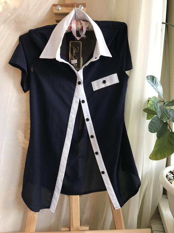 Блузка синего цвета с белыми вставками, очень приятная к телу. Размер S Новая