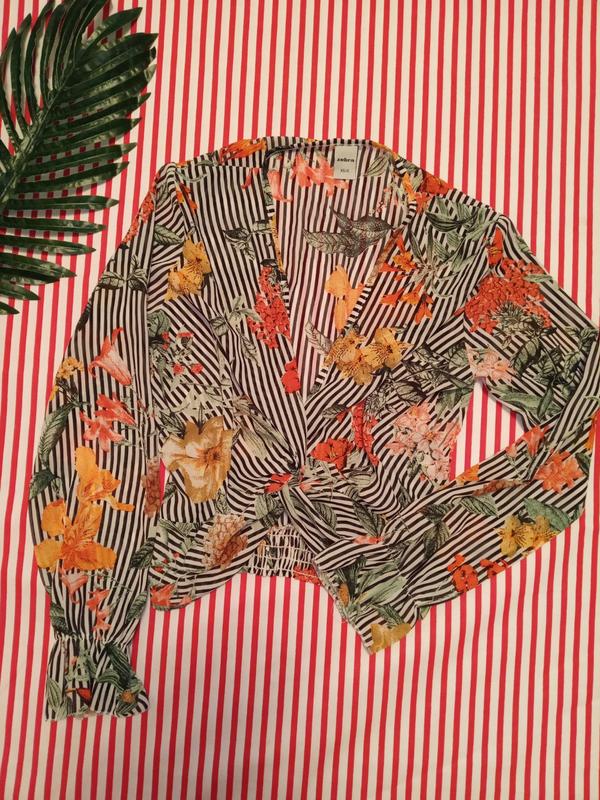 Полупрозрачная блуза-топ с длинными рукавами и рюшами. На спинке снизу на резинке, спереди переплет.