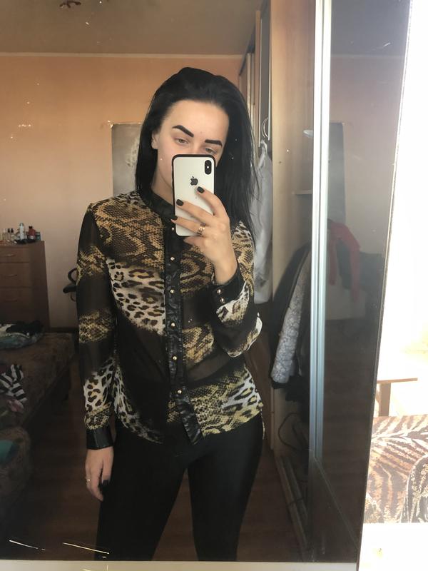 Рубашка шифоновая с кожаными вставками Принт леопард Ска
