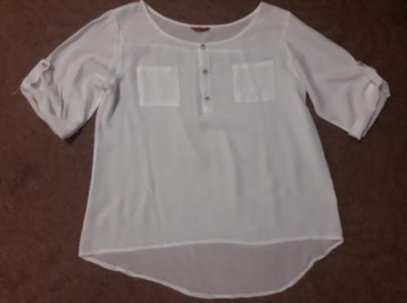Белоснежная штапельная блузка большого размера. Состояние очень хорошее. Замеры: длина перед 46см, зад 62см, ПОГ 53см, ПОниз 56см.