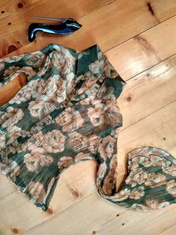 Крута блуза плісе з широкими рукавами в квітковий принт