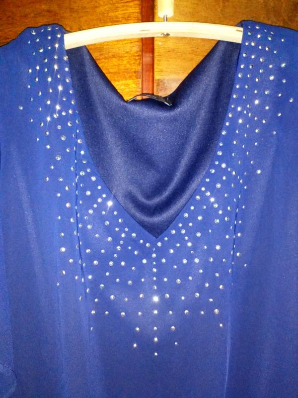 Красивая блузка 52 - 54 р. Цвет синий. Ткань полиэстер. На подкладке ( подкладка эластан). Состояние новой вещи.