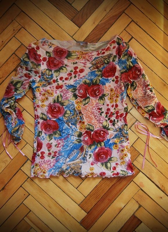 Блуза с ярким принтом. Не просвечивает. Хорошо тянется. Указан размер L/40/12, который не соответствует реальному. Я носила на S/M. Рукав 3/4, собирается лентой. Дефектов нет. Полуобхват груди 39 см. Полуобхват талии 37 см. Плечи 40 см. Рукав собран 35 см, в свободном состоянии 49 см. Длина 53 см. --- 100% предоплата на карту. Или оформляйте безопасную оплату. Наложенным платежом не отправляю. --- Внимание! Перед оформлением заказа, напишите мне сообщение. Я могу быть в командировке, а из-за отклоненных заказов снижается рейтинг. Отправка в конце рабочего дня (7-8 вечера). Соответственно, номер посылки вы получите не раньше.