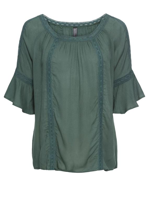 Блузка туника, свободный крой, с кружевом, на рукавах разрезы, рукава-воланчики.