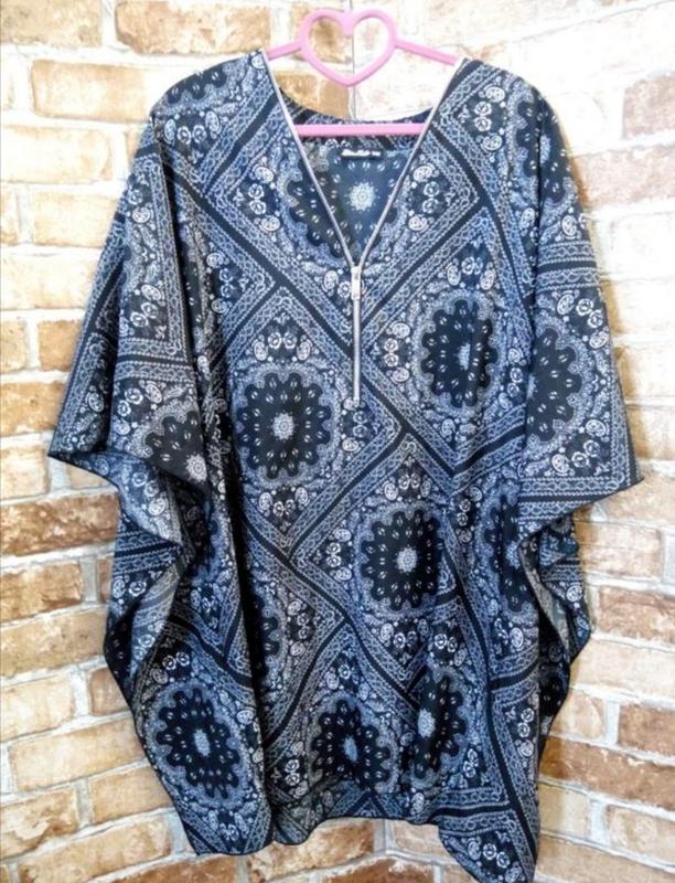прекрасная туника блуза с молнией. размер оверсайз 20-22.Длина 85, пог 63, поб 62