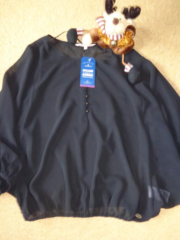 Шифоновая блуза черного цвета будет комплиментарна для любой фигуры , очень удобная ,женственная ,шикарная ! Низ блузы - на тонкой резинке ,рукав - летучая мышь ! Блуза соответствует указанному размеру , длина по центральной линии спины - 58 см !