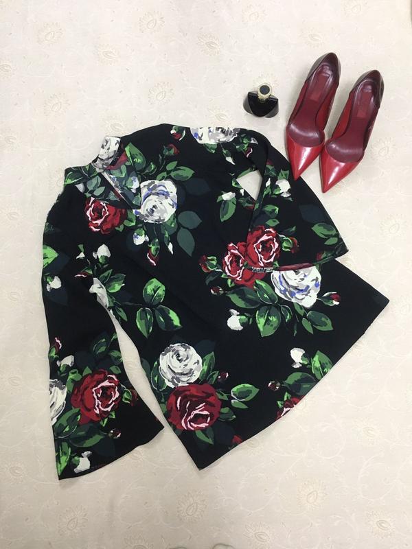 Блуза Papaya. Комір чокер, рукав кльош, актуальний принт. ЗА плечі 35, ПО грудях 45, рукав-54, довжина 64. Фото на тілі немає. Орієнтуйтеся на заміри. Дивіться також інші мої речі🌹