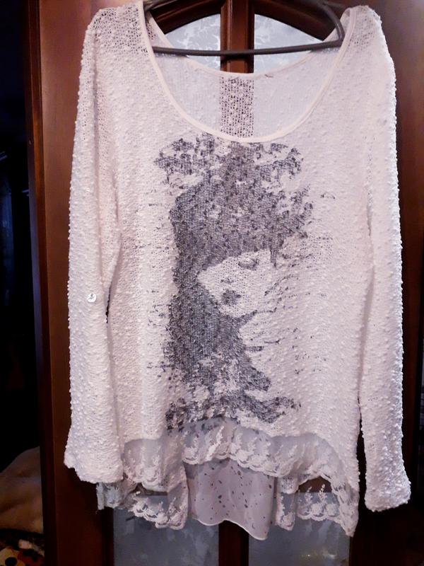 Красивая кофта свободного покроя,сзади длиннее 77см,впереди 67см,пог-52см.