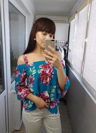🌸 Блуза у квіти від Papaya 🌸 Ідеальний стан 👍 🌸 Склад: 100% віскоза. 🌸 Розмір 10(М/невелика L). Заміри: 🌷по над грудьми (гумка) - 49,5 см; 🌷пог - 50см; 🌷довжина від плеча - 62cm; 🌷рукав - 33,5 див.