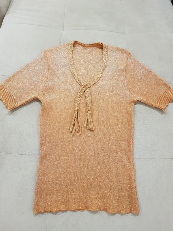 Гарна кофтинка помаранчевого кольору з люриксом на 44 укр. розмір. Продаю, бо чищу свою шафу. Висота по спині 58 см, ПОГ 36 см + тягнеться.