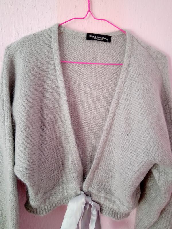 Стильное теплое болеро, стягивается у талии, итальянское производство. Длина около 45 см. В составе 30 % мохера.